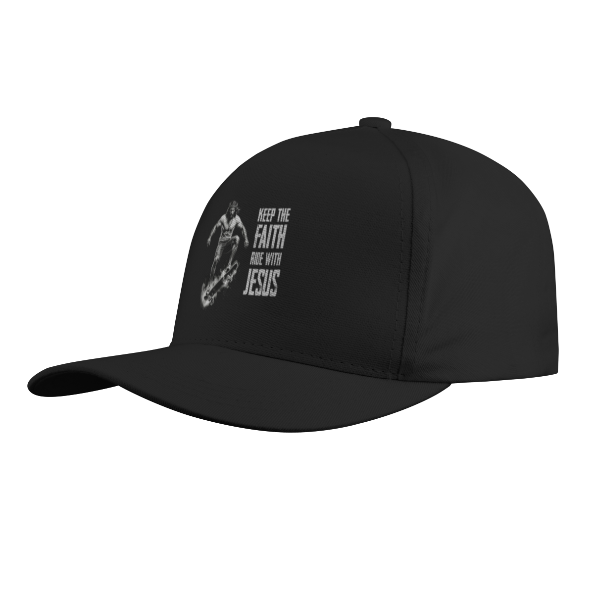 Este boné da Verbo em Traços redefine a estética do streetwear cristão ao apresentar uma ilustração impactante e realista do Mestre sobre o skate, simbolizando que a nossa caminhada — ou "rolê" — é sustentada pela fé em qualquer terreno. O design utiliza uma paleta monocromática em branco sobre o fundo preto, destacando o manifesto "KEEP THE FAITH - RIDE WITH JESUS" em uma tipografia com texturas de desgaste que remete à cultura underground e urbana. É a peça ideal para quem busca um acessório com personalidade e profundidade, transformando um símbolo de liberdade e movimento em um testemunho visual de que Jesus está conosco em cada manobra da vida.