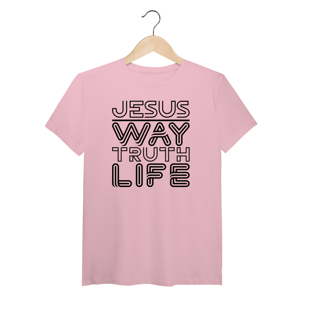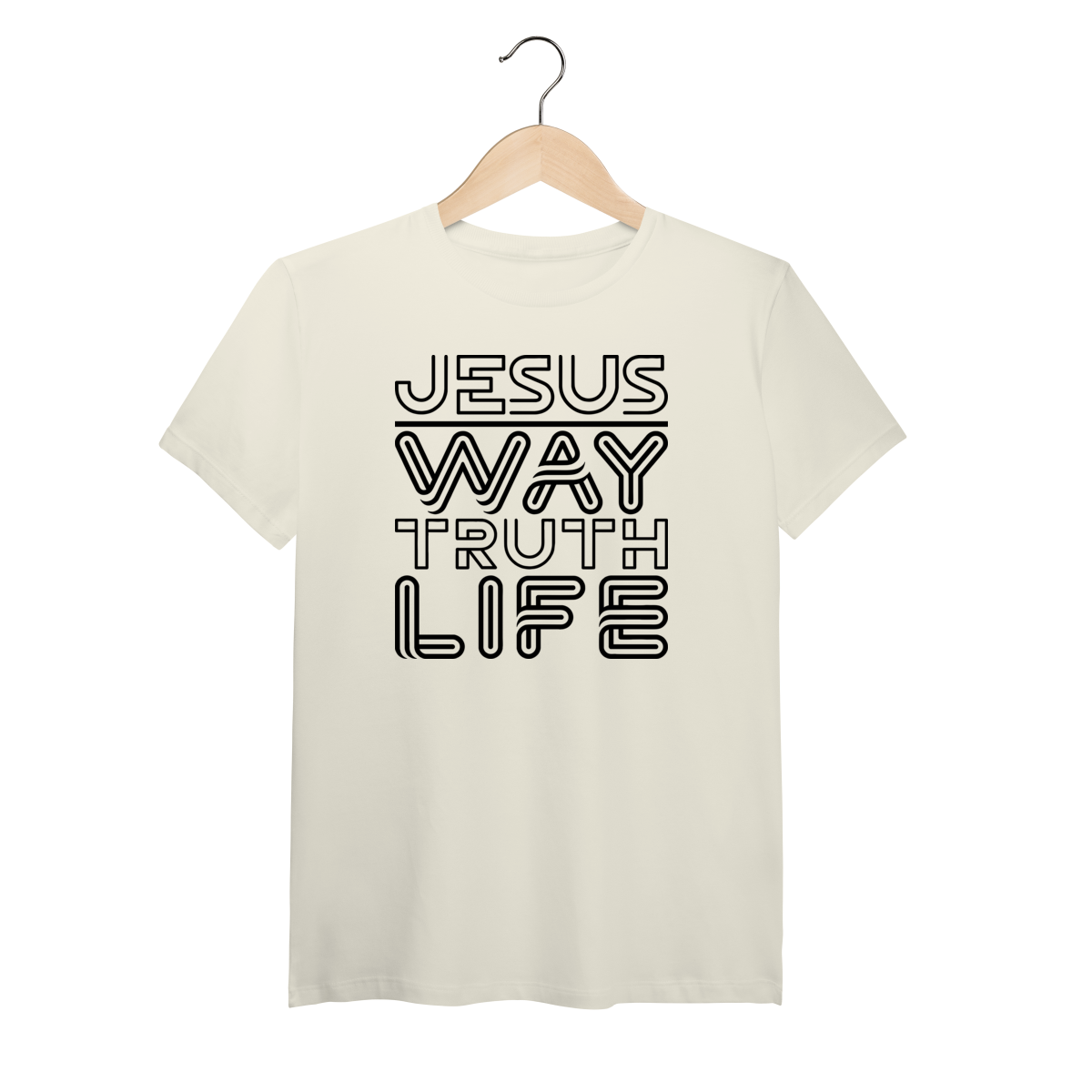 Esta peça celebra a mensagem central de João 14:6 através de um design tipográfico linear, moderno e extremamente leve. Confeccionada em legítimo Algodão Pima, ela oferece um frescor incomparável e o toque de maciez superior que define a alta qualidade da nossa marca. Uma estampa que une a profundidade espiritual a uma estética clean e sofisticada, perfeita para quem veste sua fé com elegância.
