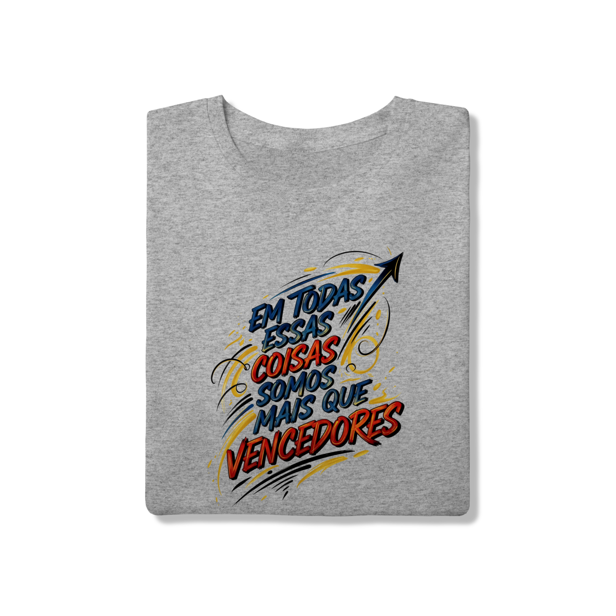 Esta estampa vibrante materializa a declaração de Romanos 8:37 através de um design de lettering dinâmico, com traços fluidos e cores que transbordam a energia do triunfo cristão. Confeccionada em nossa Linha Quality (100% algodão penteado, fio 30.1), a peça une o conforto superior da gramatura 165g à durabilidade da costura reforçada para acompanhar sua rotina de vitórias. Uma escolha unissex de alto impacto visual, ideal para quem deseja vestir um manifesto de superação com o estilo moderno e autêntico da nossa marca.