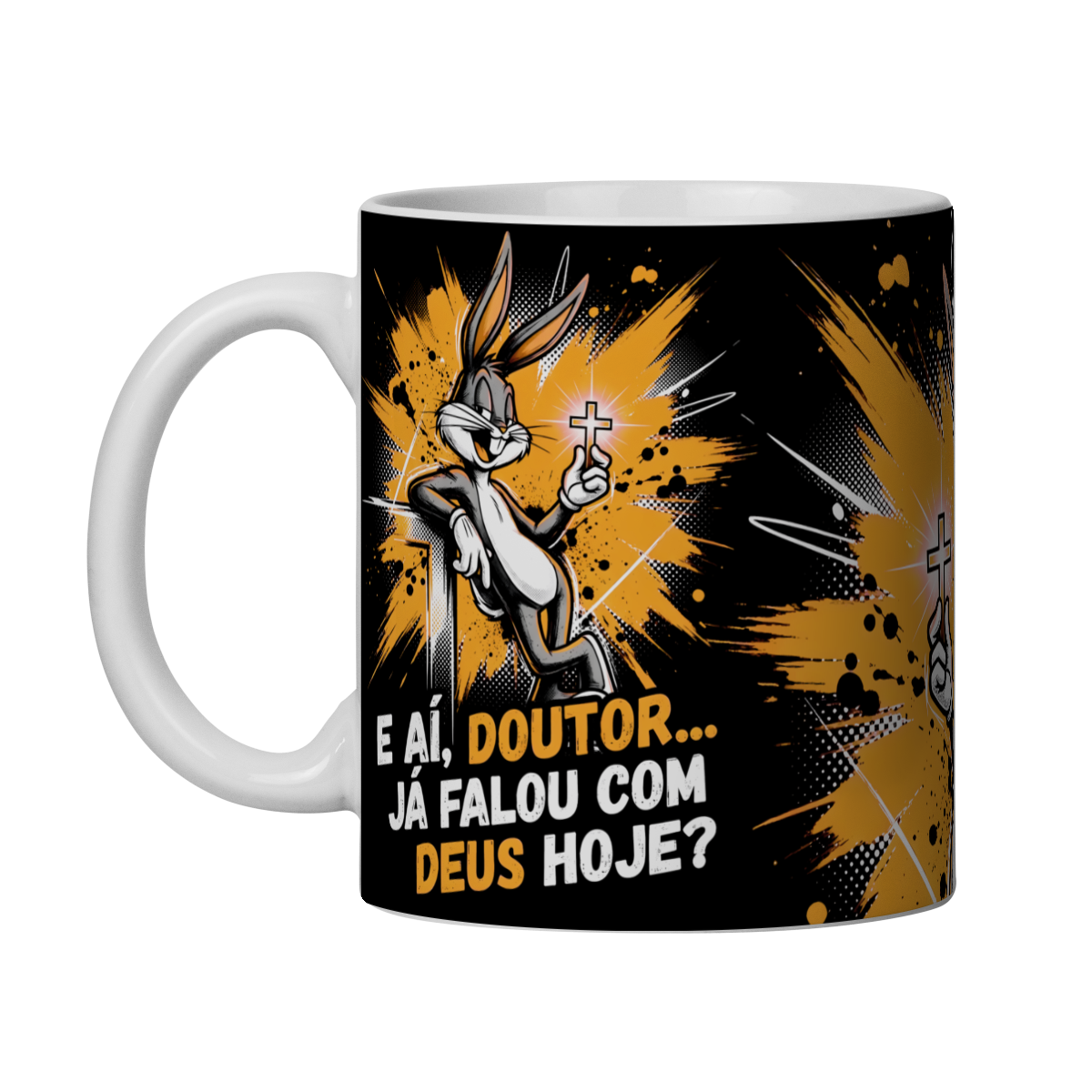 Esta caneca une a irreverência de um dos personagens mais icônicos da cultura pop a uma mensagem de reflexão espiritual profunda e direta. Com uma arte dinâmica em estilo de pintura urbana, ela destaca a pergunta essencial: "E aí, doutor... já falou com Deus hoje?". Produzida em cerâmica de alta resistência, é o presente ideal para unir bom humor, estilo e um lembrete diário de priorizar sua conversa com o Pai.