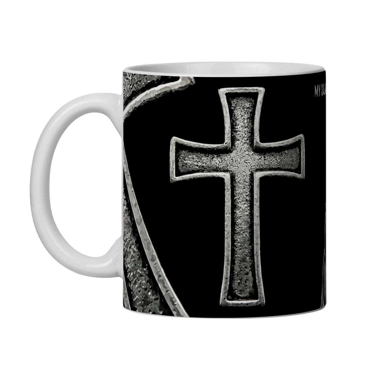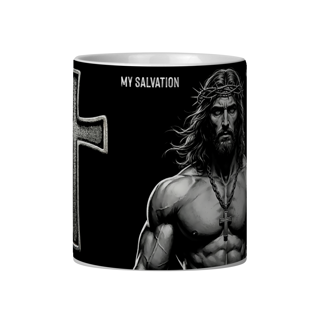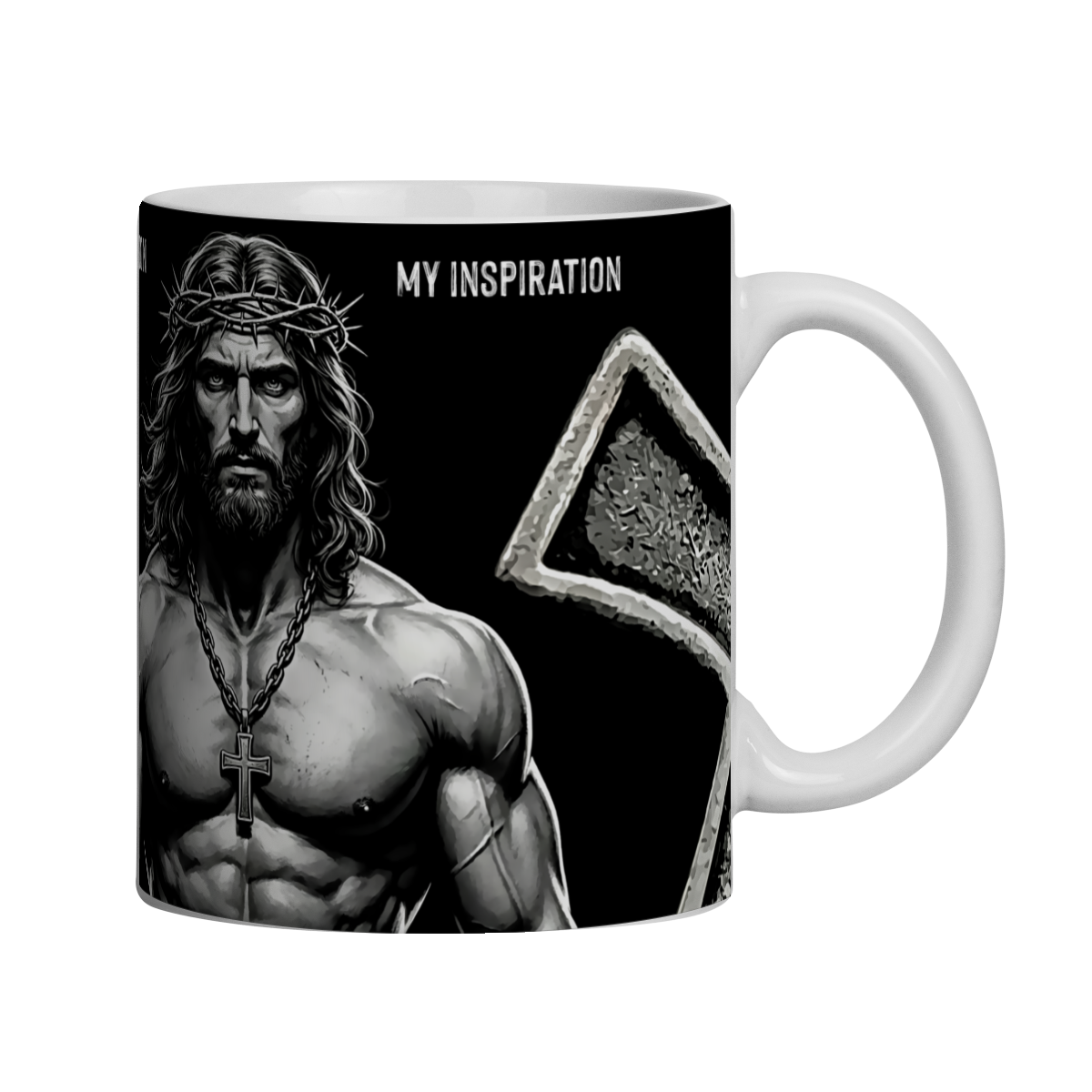 Esta peça imponente une a estética da força física à espiritualidade, apresentando um design hiper-realista de Jesus com a coroa de espinhos e o símbolo da cruz em alto contraste. Perfeita para o público que busca motivação no treino e na fé, ela destaca as palavras "Salvation" e "My Inspiration" em uma arte de impacto visual cinematográfico. Produzida em cerâmica de alta qualidade, é o acessório ideal para quem deseja começar o dia fortalecendo tanto o corpo quanto a alma.